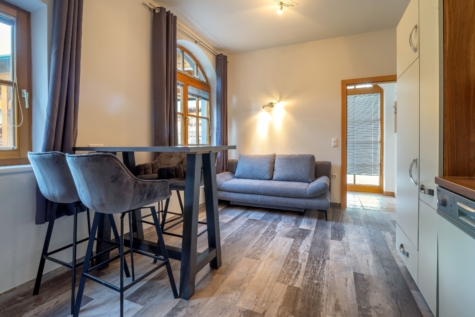• ein gemütlicher Essbereich, Badezimmer (Dusche, WC)